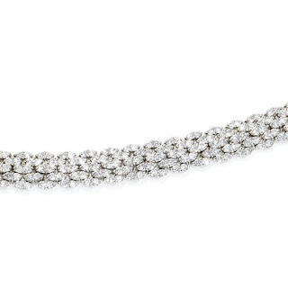 This stunning Garavelli 18k white gold necklace, features 730 round brilliant cut white diamonds, of F color, VS2 clarity, of excellent cut and brilliance weighing 25.62 carats total. This Garavelli diamond necklace measures 18 Inches in length and 10mm at the widest point.